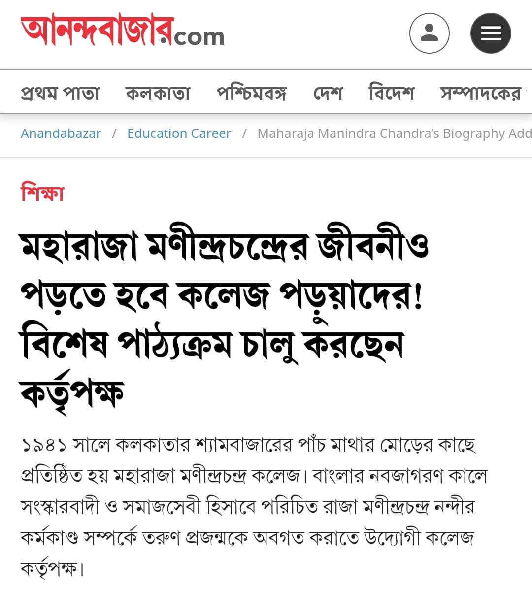 Maharaja Manindra Chandra College, established in 1941, is a prestigious undergraduate institution located in the heart of Kolkata, West Bengal. Named after Maharaja Manindra Chandra Nandy of Cossimbazar, a prominent zamindar and philanthropist, the college is part of the University of Calcutta.
