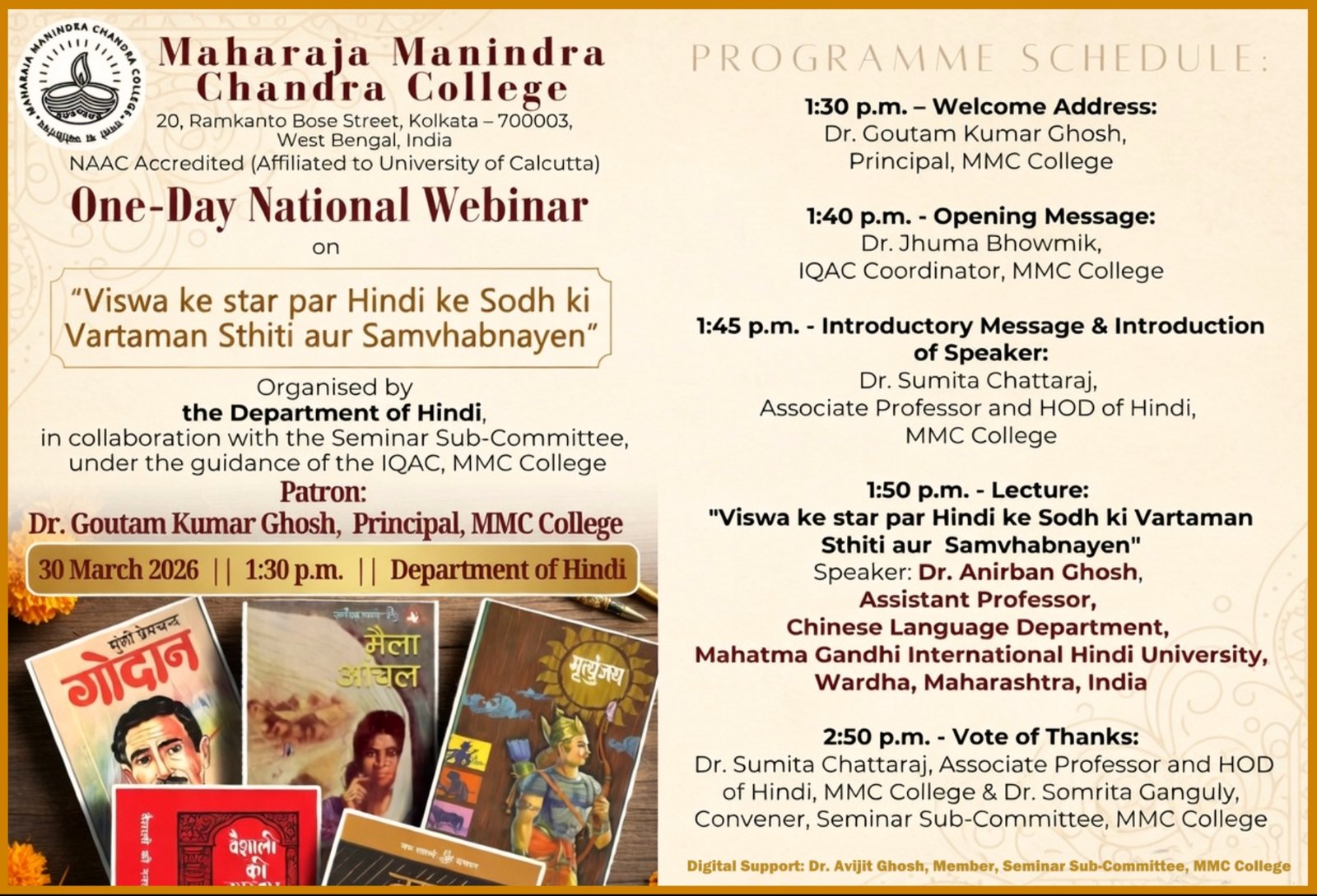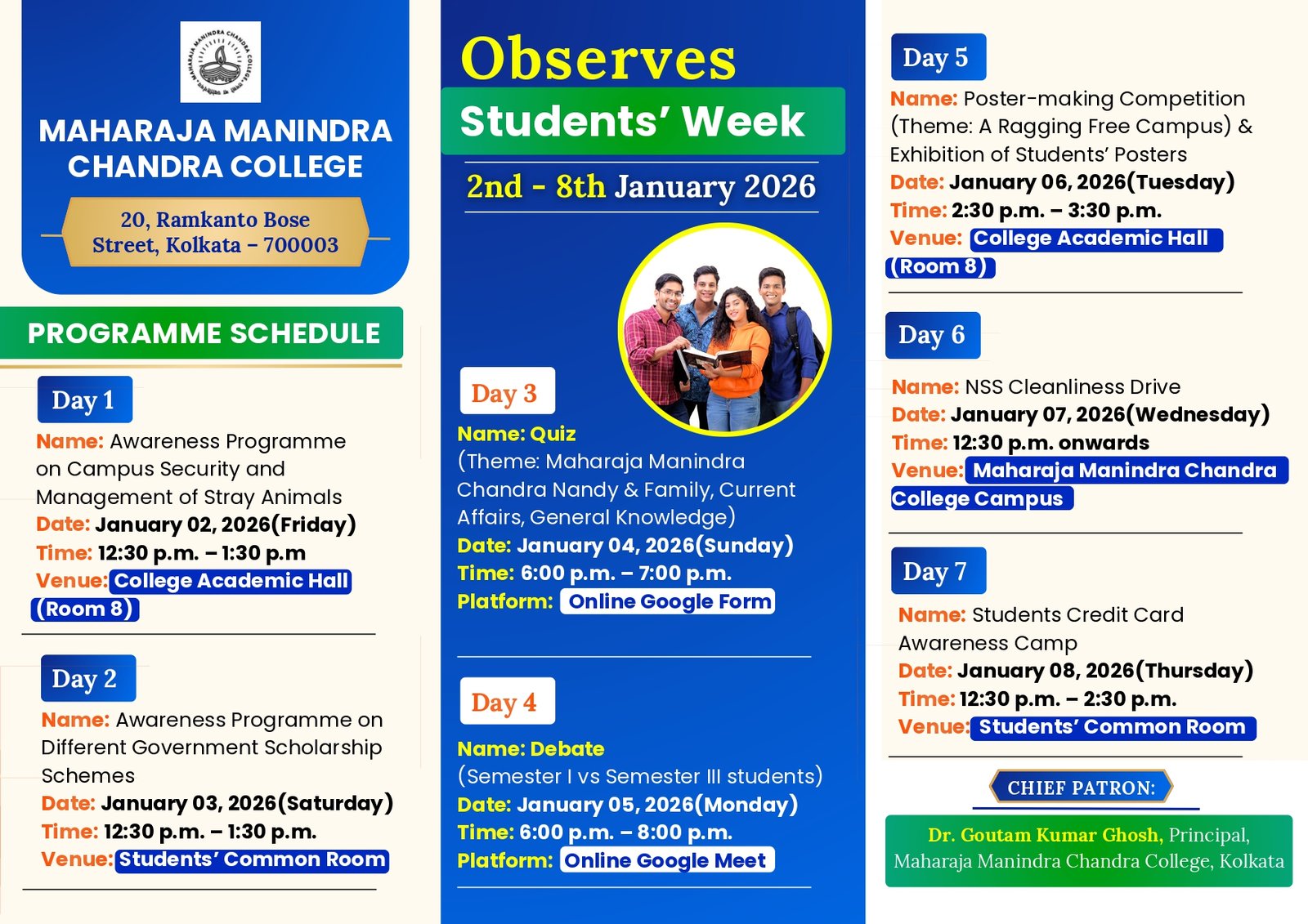 Maharaja Manindra Chandra College envisions itself as a dynamic and inclusive center of academic excellence, fostering a culture of innovation, critical thinking, and lifelong learning.