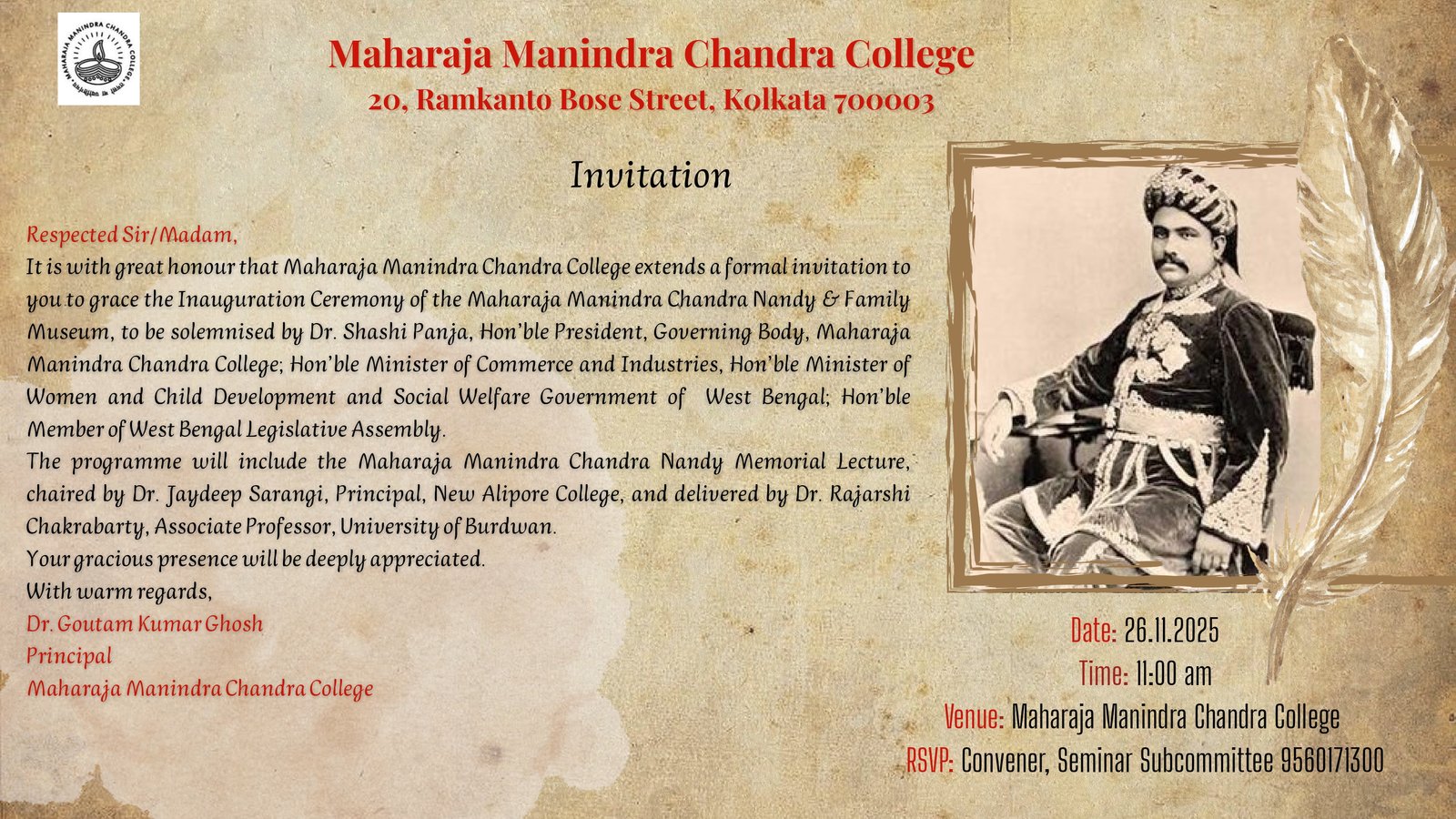 Maharaja Manindra Chandra College envisions itself as a dynamic and inclusive center of academic excellence, fostering a culture of innovation, critical thinking, and lifelong learning.